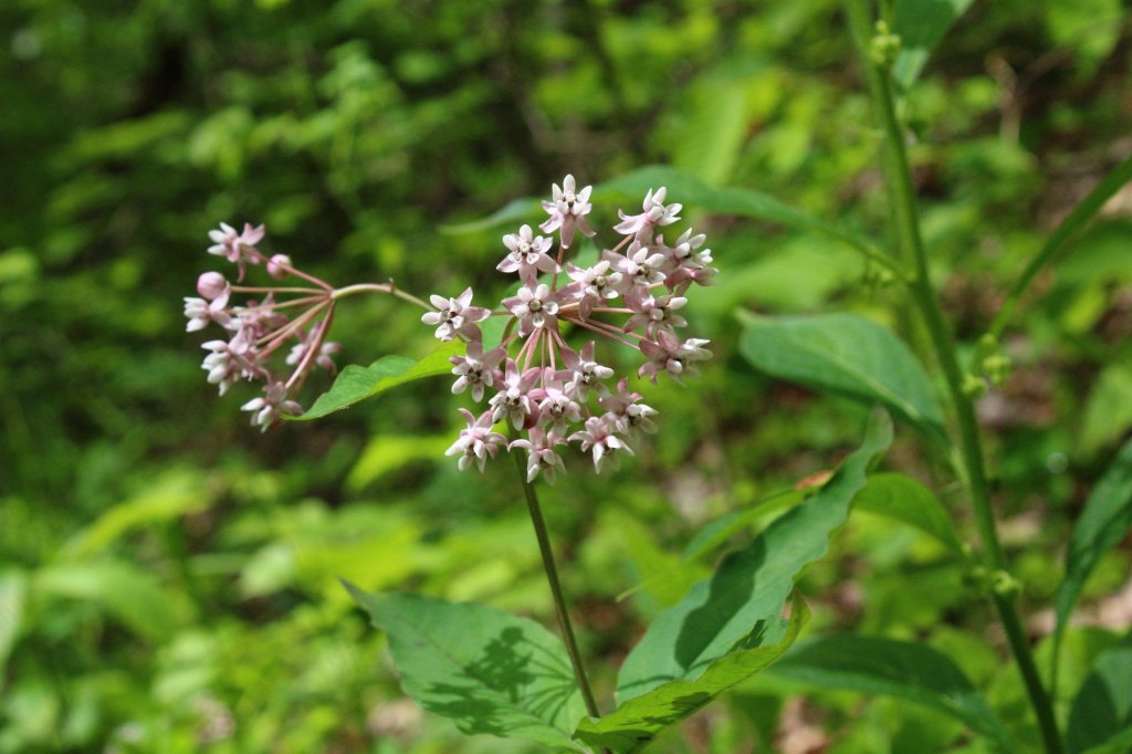 Plants in Asclepias are fairly easy to identify based on features. For the most part, milkweeds are 1-5′ tall herbaceous flowering plants, with oppositely arranged, simple leaves; and showy, 5-petaled, umbellate flowers borne from the leaf axils. Two species in Ohio that break those rules are A. verticillata and A. tuberosa, whose leaves are whorled, and alternately arranged respectively. Milkweeds earned their name from the white latex that leaks out when stem or leaf tissues are damaged. The latex is filled with toxic compounds that members in Apocynaceae share; broadly, a smattering of cardenolides- a type of steroid often derived from sugars- which have the ability to stop one’s heart through inhibition of Na+/K+ channels across cell membranes. To give you an idea of how toxic Apocynaceous cardenolides are, oleander is another member of Apocynaceae, and is responsible for many poisonings across animals. Eating several leaves is enough to potentially stop your heart.