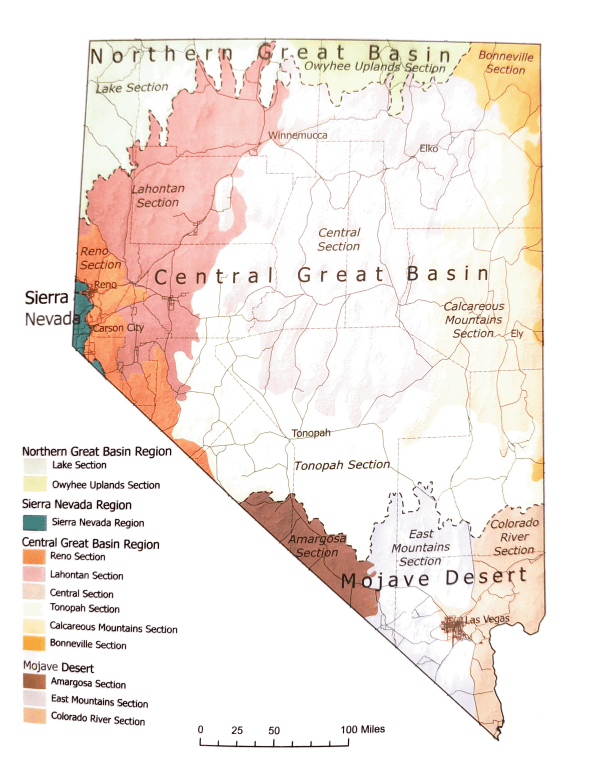 As a note, Arnold (Jerry) Tiehm and Jan Nachlinger recently published the first complete annotated checklist for Nevada’s vascular flora since 1925. In this publication they altered some of the boundaries for each ecoregion. These alterations were based upon a starting point of floristics; Tiehm & Nachlinger used Holmgren’s 1972 delineations and altered the boundaries using modern herbarium data and personal experience.
